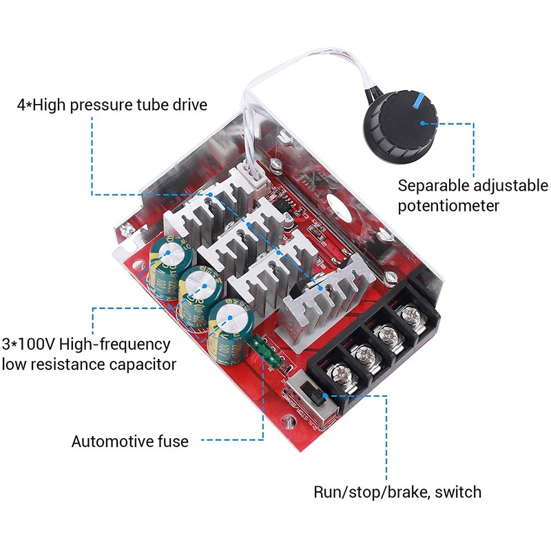 - The knob has a switch function, which can control the motor speed from 0% to 100%. Adjustable potentiometer flexible cable can be separated, the cable length is 15CM.