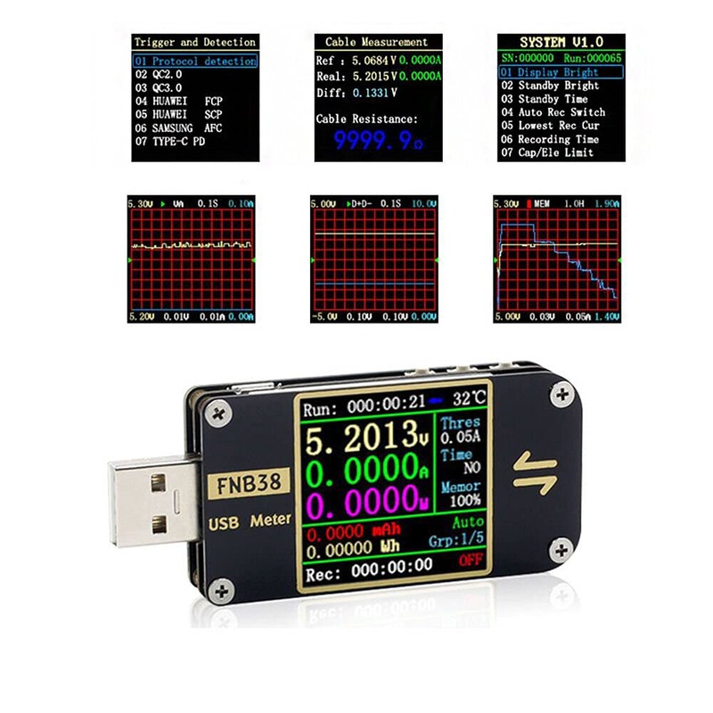 DollaTek FNB38 Current Voltage Meter USB Tester QC4+ PD3.0 2.0 PPS Fast Charging Protocol Capacity Tester 5A 5V / 12V / 24V