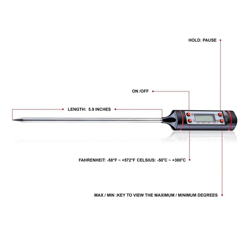DollaTek Kitchen Thermometer Digital Meat Thermometer with Stainless Long Probe and Accurate LCD Screen for Liquids, Meat, Milk, Grill, Cooking, Barbecue