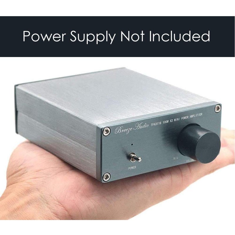 - The Mini Amplifier is small in size but delivers 50W per channel, giving you maximum impact while saving space. 19V power supply ensures plenty of power to drive most 2-8 ohm passive speakers for your audio system.