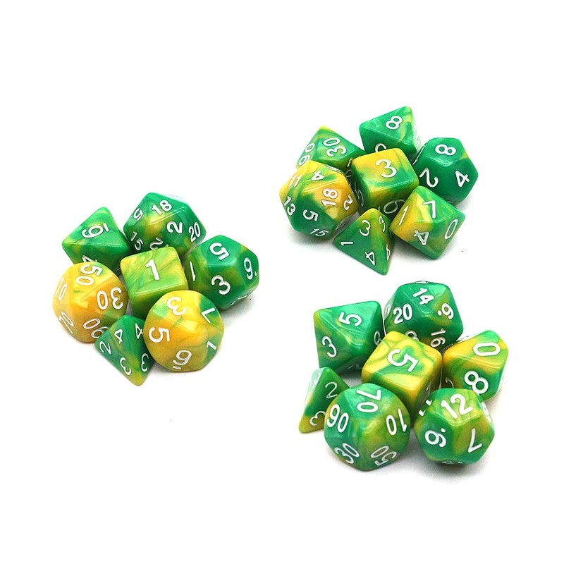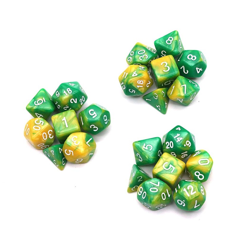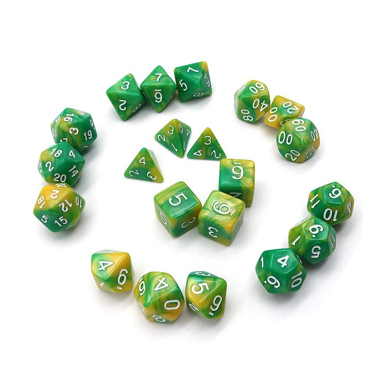 DollaTek Polyhedral Dice Set Table Games Dice 3 Sets Dice 3 x 7 (21 Pieces) Dice Series D20 D12 D10 D8 D6 D4 DND Dice DND RPG MTG Double Colour One Piece (Yellow and Green)