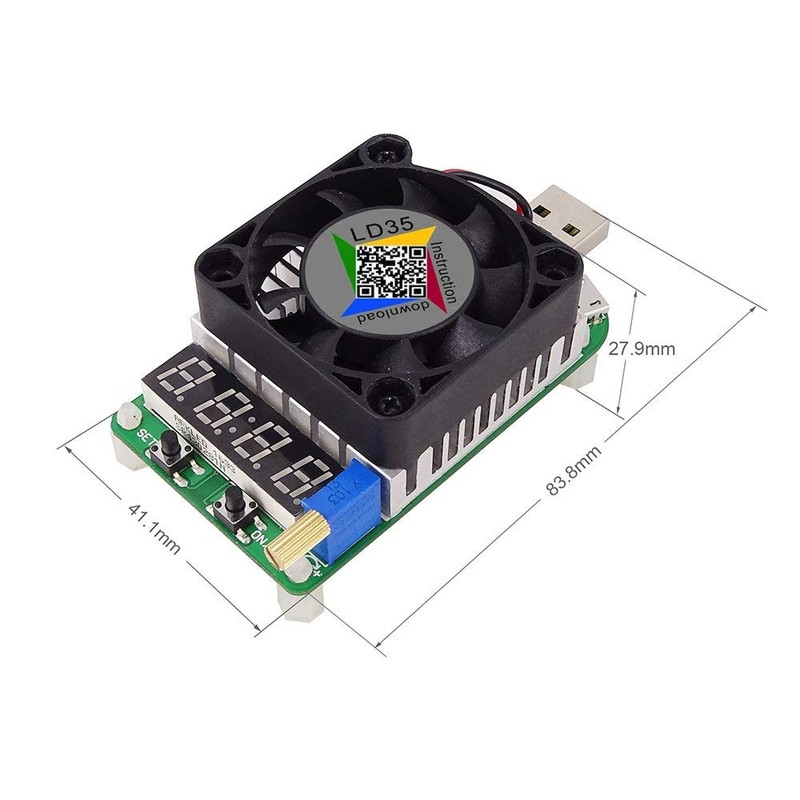 DollaTek USB Charging Tester Electronic Load Tester Resistance Module 35W LD35 USB Interface Discharging Adjustable Temperature with Fan