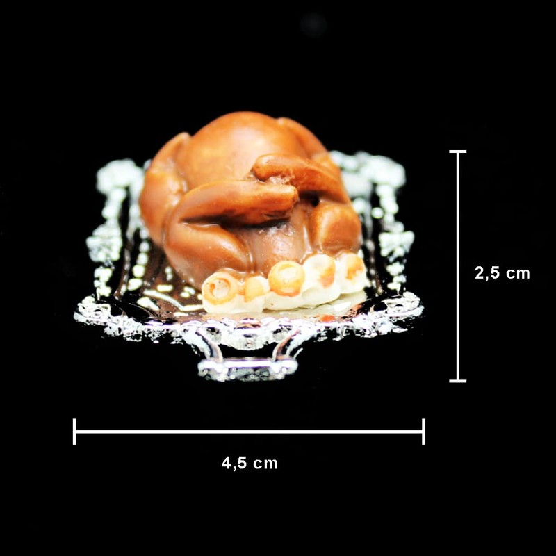 - The mini turkey is an artificial food on a silver metal serving plate.
