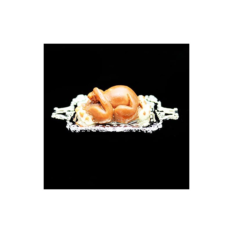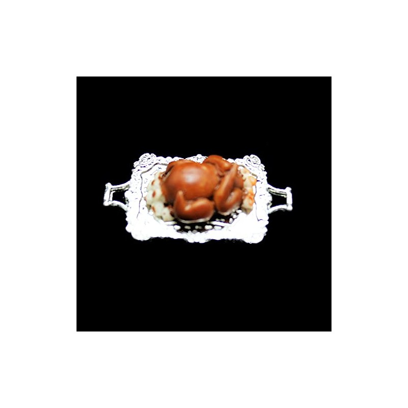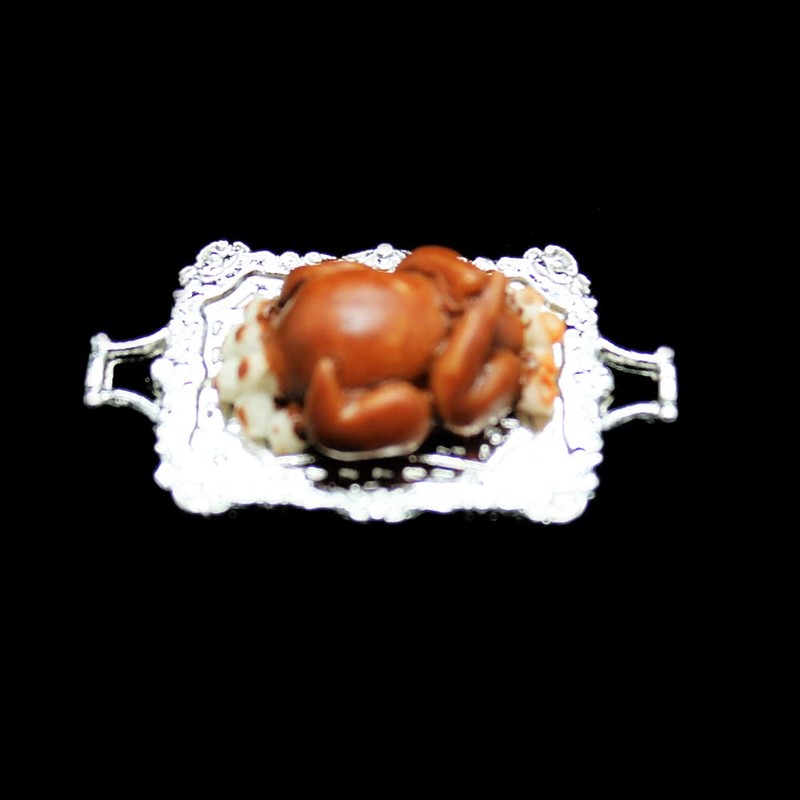 Dollhouse Miniature Food Turkey Roast Chicken Silver Tray 1:12