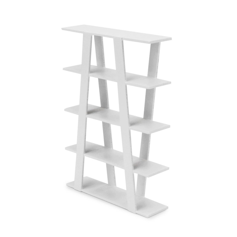 Dollhouse Shelf Miniature Furniture Bookshelf 1/12 Scale Wooden Storage Rack Four Tier Shelves Doll House Accessories and Furniture Display Stand Mini Scene Ornaments Decoration (White)