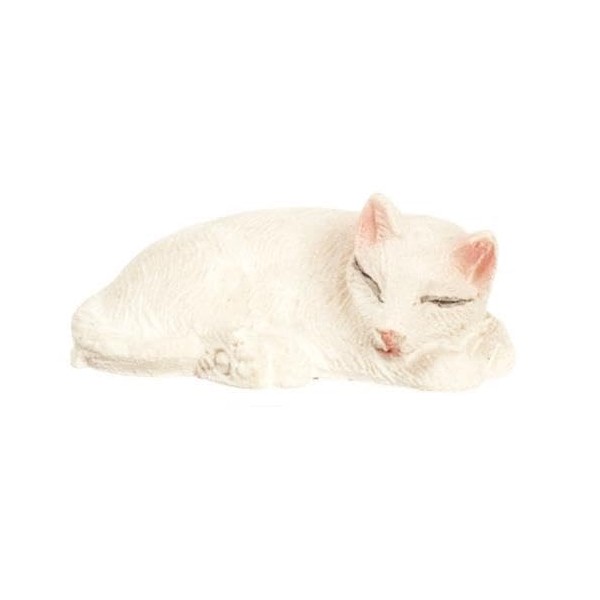 Dollhouse Sleeping White Cat Rolled Up Lying Miniature Pet 1:12 Scale
