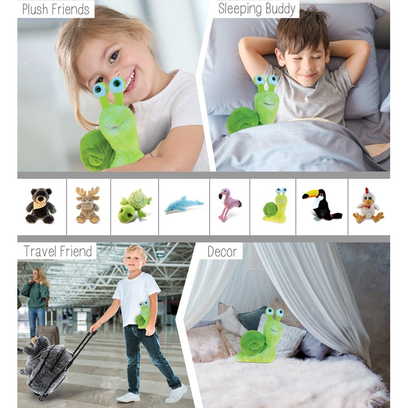 - IDEAL USE FOR SOFT STUFFED ANIMAL - Green Snail stuffy is a unique cute teddy bear stuffed animal for boys and girls to bring cheer. Stuffed animals for babies teaches kids to be interactive with others. Fun, realistic wild animal stuffed animals will help expand kids wild animal and wildlife knowledge. Cuddly soft plush dolls make an adorable nap sleep bear, adventure friend for kids, and lightweight plush toy is easy to bring on travel trips!