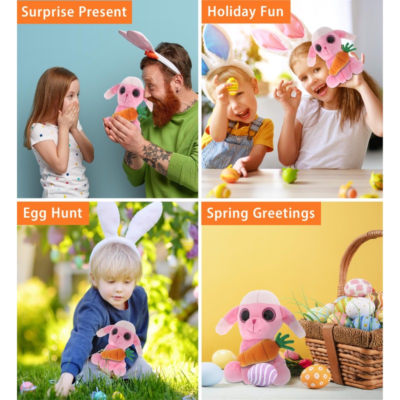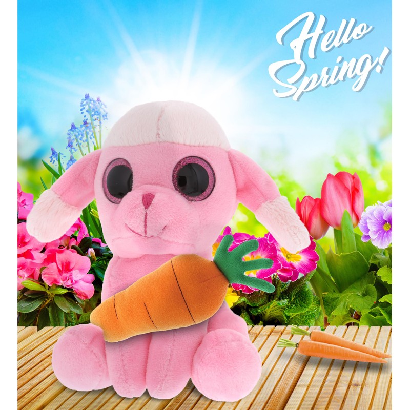 DolliBu Happy Easter Sparkling Eyes Pink Poodle Dog with Carrot - Cute Stuffed Animals with Carrot Plush Toy, Spring Easter Plush Animal - 6 Inches