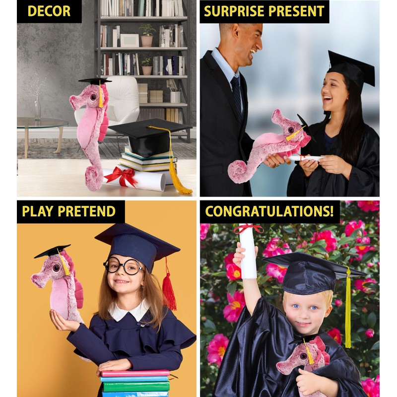 - IDEAL USE FOR THE SOFT STUFFED GRADUATION ANIMAL - Surprise your loved one with a cute plush toy that would make them remember their most awaited graduation day. Gifting a Pink Seahorse plush in a graduation cap, similar to what your little one will be wearing on graduation day, is a cute way to make them enjoy the commencement ceremony even more! The adorable plush will make a perfect reward for kids who are now one step closer to their dreams.