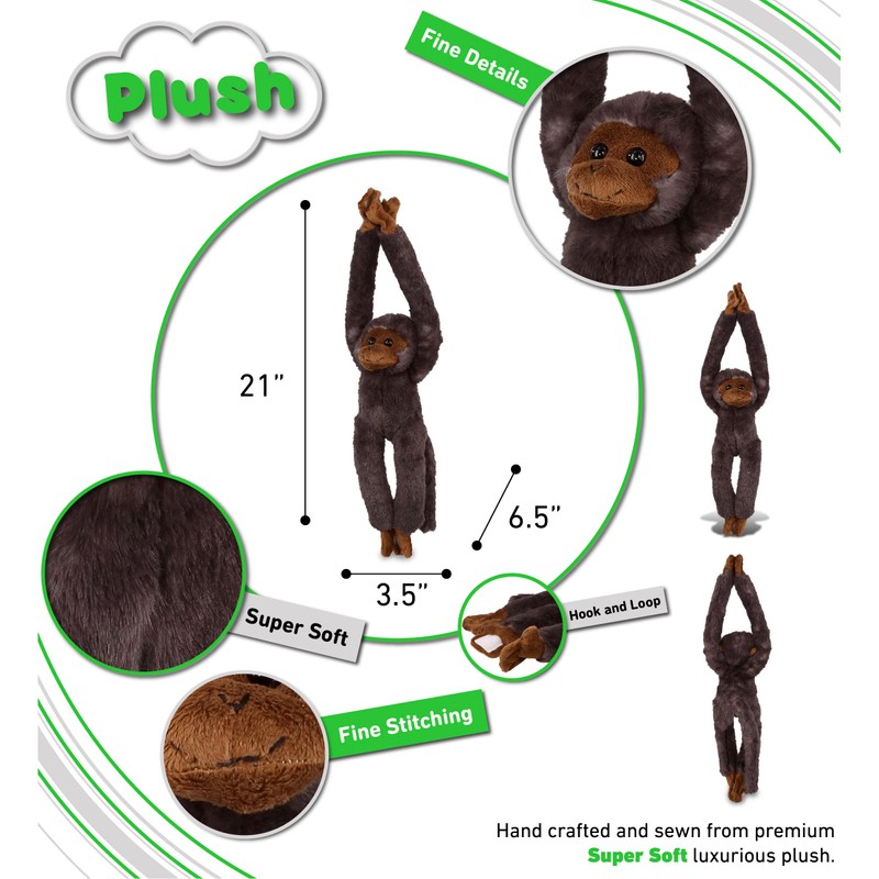 - INCLUDED WITH THE PURCHASE OF ADORABLE HANGING CUTE MONKEY PLUSH - Includes 1 DolliBu Black Hanging Capuchin Monkey Super Soft Plush with long arms & hook & loop tape, decorated with realistic features of a wild capuchin monkey. The monkey's body is of black soft fabric, making it perfect for cuddles & snuggles. Hanging monkey plush toy features a long black tail & charming beautiful eyes. This cute plush toy buddy measures 6.5″Lx3.5″Wx21″H.
