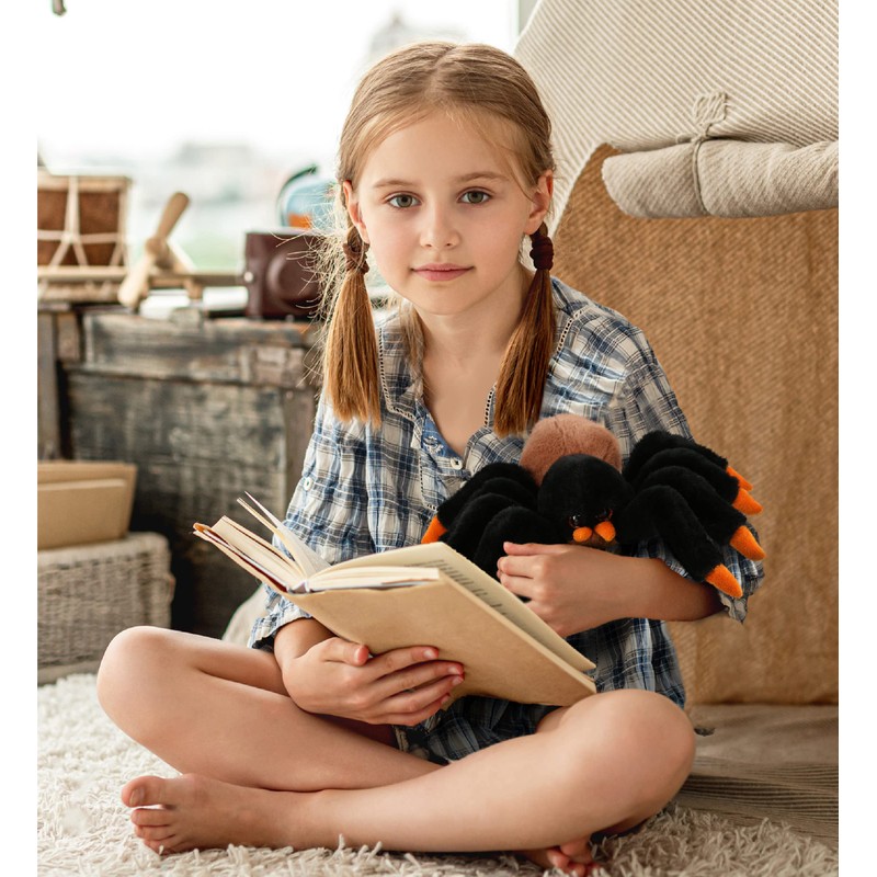 - HIGH-QUALITY SUPER SOFT PLUSH SPIDER STUFFED ANIMAL - The machine-sewn wild tarantula toy plush is made of 100% polyester, stuffed with soft fluffy fillings. Crafted with durable, child-friendly features. Huggable plush spider toy with black plush. Cute soft toys designed to be your little one's best buddies indoor and outdoor. To maintain fluffy stuffed animals, wash spider plush toys with cold soapy water and allow it to air dry.