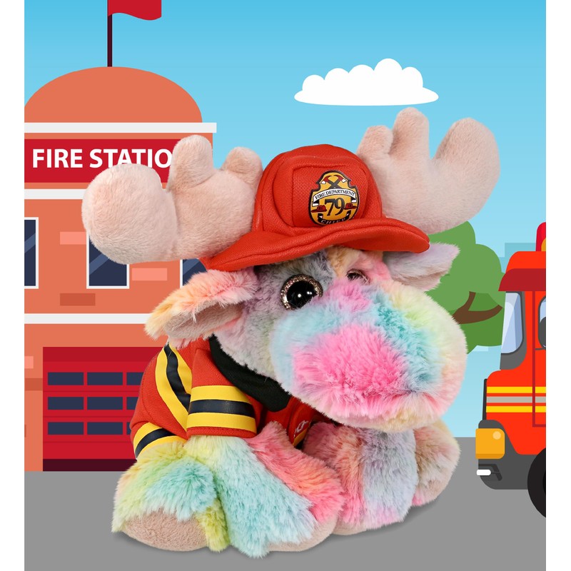 - IDEAL USE FOR THE MOOSE PLUSH FIREMAN TOYS - Show your appreciation for real life heroes like firefighters by collecting or gifting rainbow floppy moose stuffed animal firefighter doll for boys and girls. The cute moose wild life stuffed animal is a great way to introduce your kids to emergency workers while they are having fun. Perfect pretend play firefighter stuffed animals for kids or story telling stuffed animals about heroism.