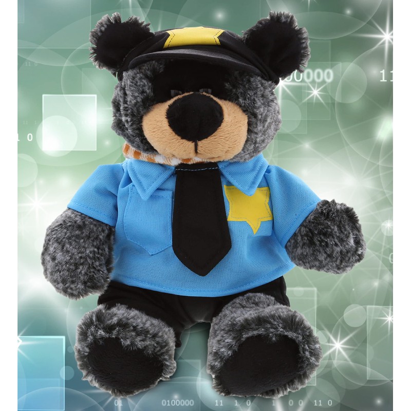 - THE BLACK BEAR PLUSH IS FOR ANYONE WHO LOVES STUFFED ANIMALS - Novelty Black Bear Police Officer stuffed animal in uniform was designed with super soft plush & fluffy fur, a sweet plush gift for your loved one who dreams of becoming a policeman when they grow up. Make your little one feel more safe & comfortable with their police cuddle plush toy. Unique stuffed animal toy with police costume outfit for kids to hug when they are alone.