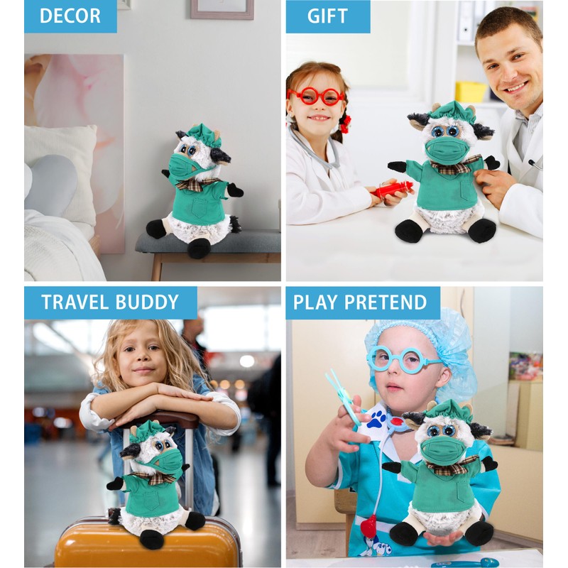 - IDEAL USE FOR THE SOFT DOCTOR STUFFED ANIMAL - Surprise your loved one with their new partner—the adorable sitting cow doctor plush toy! Sending a doctor cow plush to your little one is a great way to make playtime more fun. Use the cute doctor plush animal to teach kids to respect the work done by doctors & be comfortable around them. Perfect doctor gift for kids who love to pretend play as doctors or nurses.