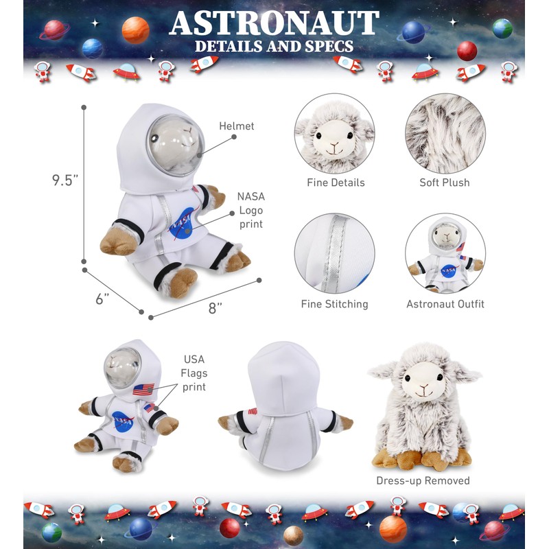 - IDEAL USE FOR THE ASTRONAUT STUFFED TOY - Spark everyone's curiosity about space with the Squat Sheep Astronaut Toy. Transform any space bedroom decor for boys or girls and be ready to embark on your NASA space journey. The Astronaut Doll makes a perfect gift for kids celebrating their birthday with a space themed party. Collectors of NASA and enthusiasts of space will surely adore this stuffed Squat Sheep astronaut figure.