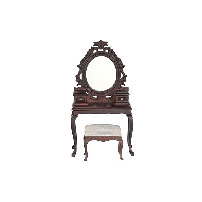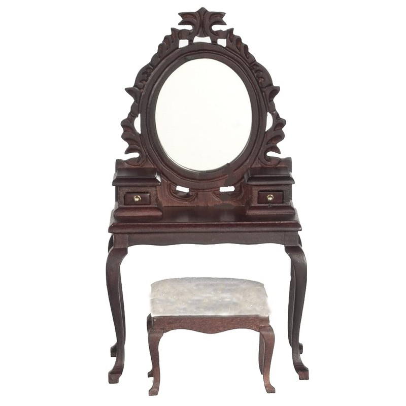 Dolls House Mahogany Vanity Dressing Table & Stool Miniature Bedroom Furniture