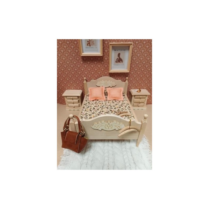 - COMPLETE MODERN BEDROOM: This 1/12th scale accessory pack contains all the essential furnishings to decorate a dollhouse bedroom including a double bed, pictures, rugs, bags and more.