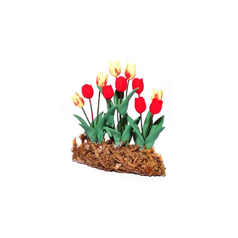 Dolls House Yellow and Red Tulips Flowers in Ground Grass Garden Accessory