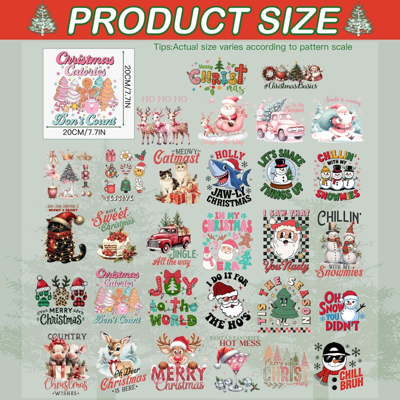 Diverse and Captivating Christmas Designs—Each of the 30 sheets is adorned with a unique Christmas design. You'll find classic Christmas elements such as Santa Claus with his big, jolly belly and his trusty reindeer, ready to fly around the world on Christmas Eve. It will bring a festive touch to any item you transfer them onto. And let's not forget the cute elves, adding a touch of whimsy. These designs are perfect for creating a wide range of items.