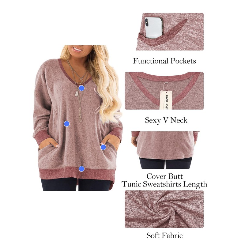 DOLNINE Plus Size Winter Tops for Women Oversized Sweatshirts Pockets Tunics ...
