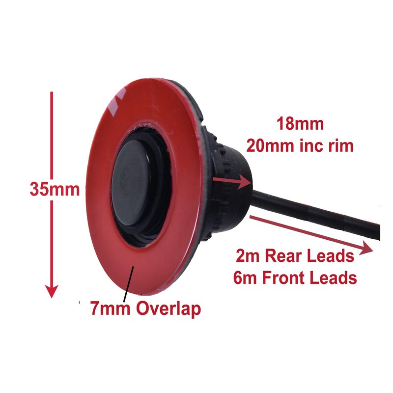 These sensors have a large adhesive rim which means that after you have used the hole punch to create your hole, you just need to remove the red layer and adhere the sensor to the inner side of your bumper with the centre lined up in the hole. Finally the inner part of the sensor then has a screw mechanism to adjust the front of the head forwards to align it with the front of the bumper, this mechanism allows for different thickness of bumpers to give a proper flush fitting. The Kit includes a 16.5mm hole punch to perforate bumper with the exact hole size for the sensor to be placed through.