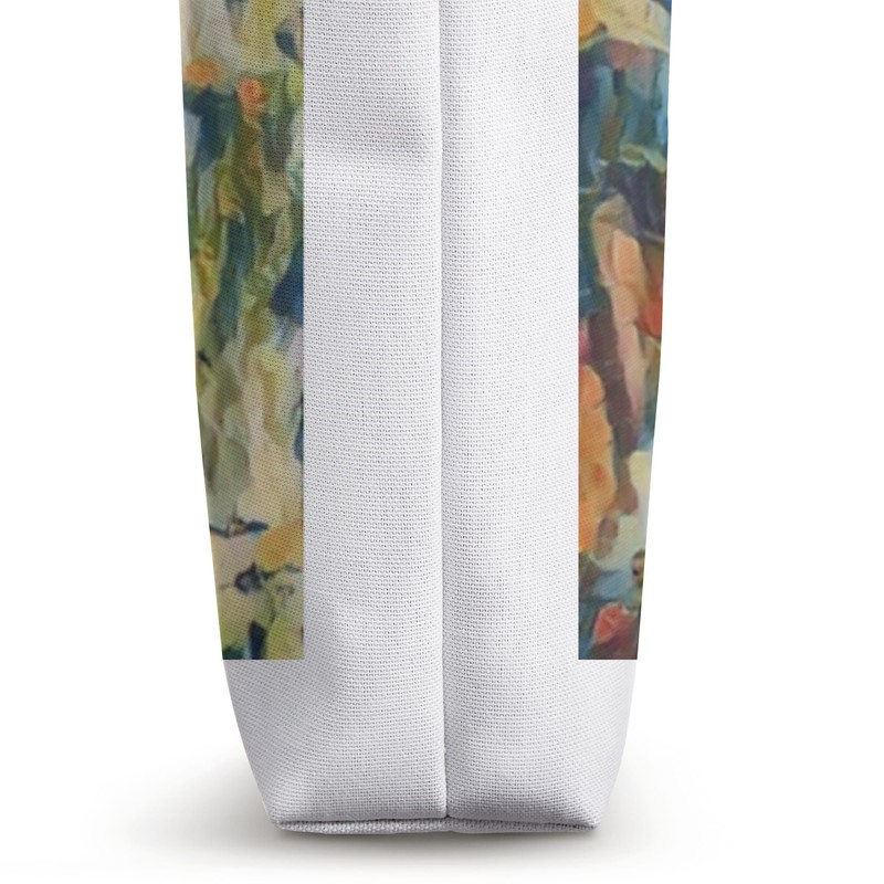 - 16” x 16” bag with two 14” long and 1” wide black cotton webbing strap handles.