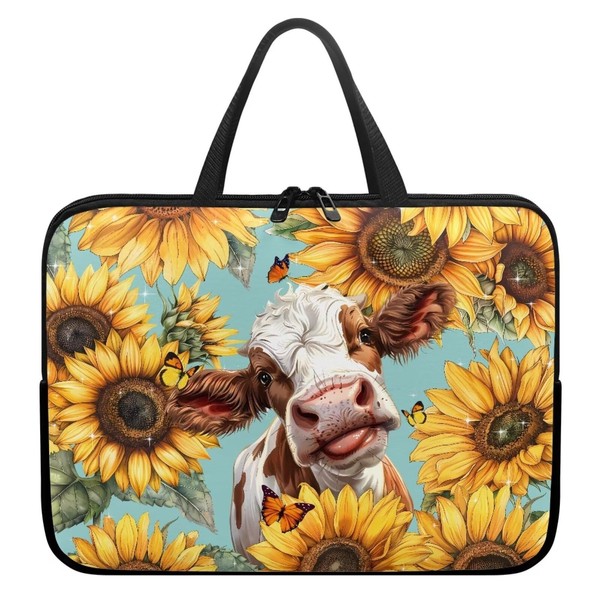 Dolyues Computer Bag 10-17 Inches Laptop Bag Cow and Sunflower Computer Briefcase Water-Repellent Bag for Travel Work College Lightweight