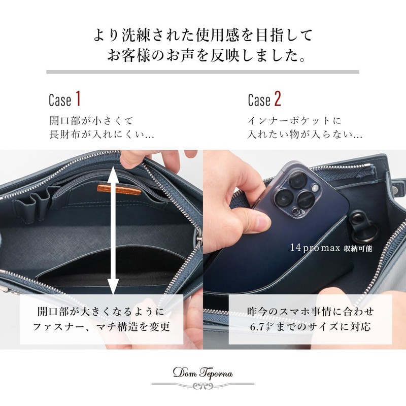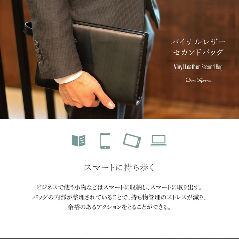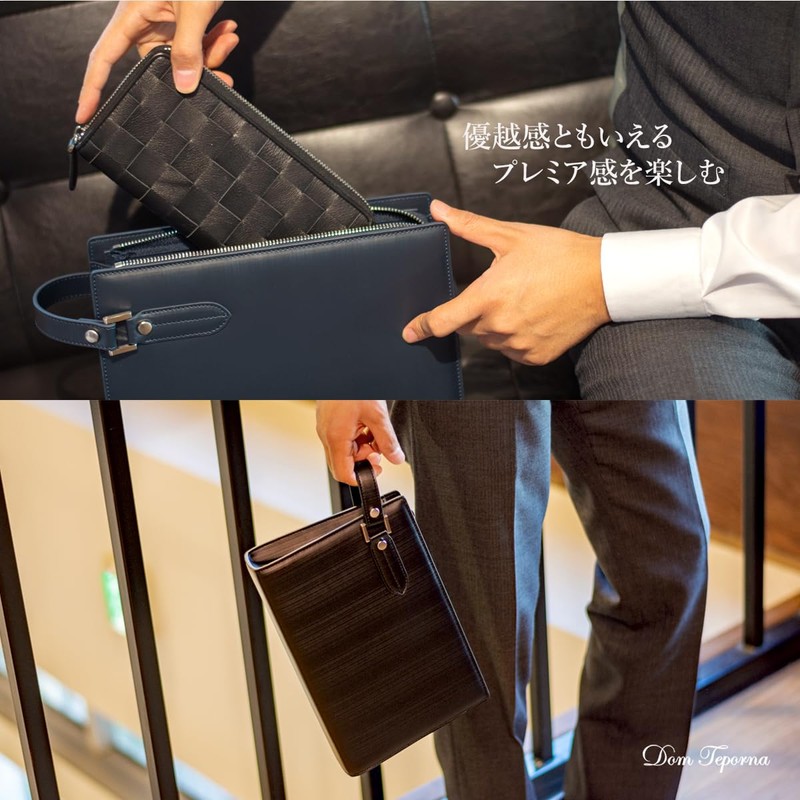 Dom Teporna Men's Second Bag, Cowhide Leather, Binal Leather, Wide Opening, Smart Compact, Clutch Bag, For Business, Ceremonial Occasions, Handbags, navy