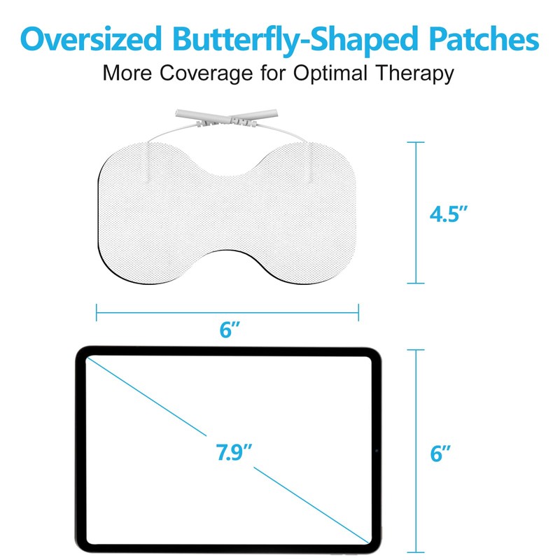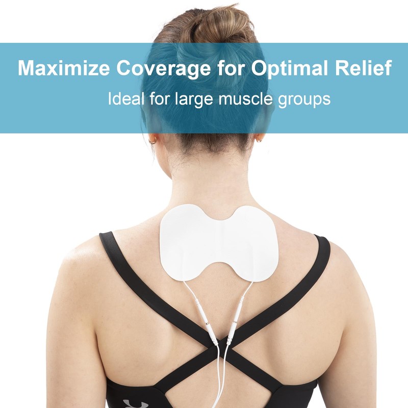- Extra Large Coverage: The unique butterfly-shaped 4x6 inch pads are designed to cover a very large area, including the lower back, for effective pain relief and muscle stimulation