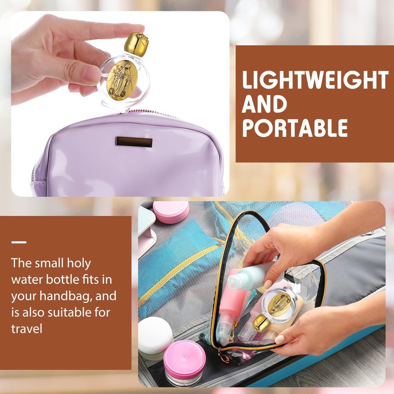 - Mini Holy Water Bottle: measuring 2.5 inches tall by 1.8 inches wide by 1 inch thick, holds 0.5 floz of holy water; Small and lightweight, the holy water bottle is portable and easy to fill, fits in your handbag, and is suitable for travel