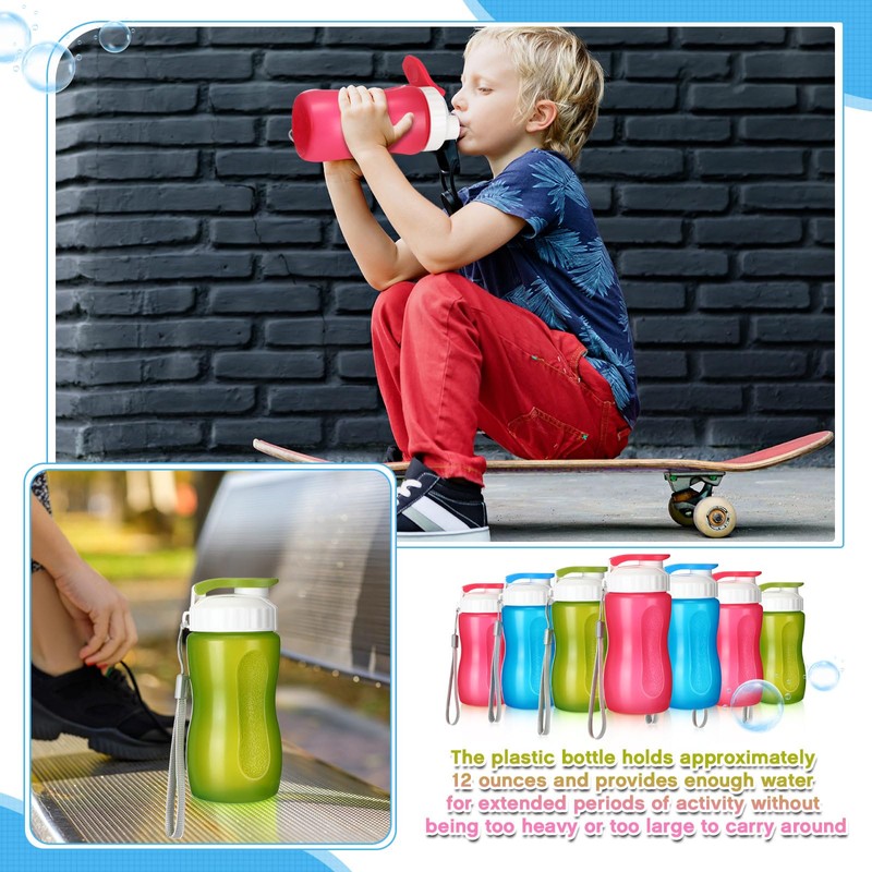 - Portable Design: the kids plastic travel bottles have a lightweight and portable wristband, which can carry the water bottle where you like; At about 12 ounces, the size is proper for kids and offers enough water to last through lengthy activities without being too heavy or bulky to carry around