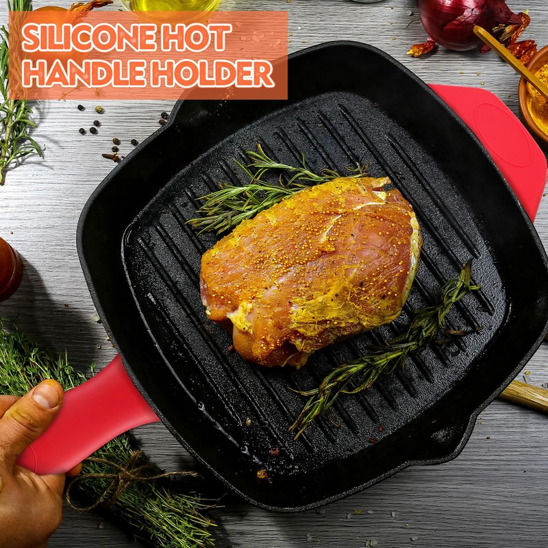 - Anti Slip Design: the silicone pot handle cover has a special anti slip texture design and silicone ribs inside, which can fit your cast iron skillet tightly to prevent it from falling off and is safer to use