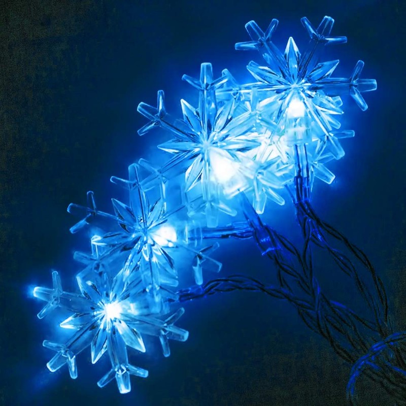 - ❄️ PACKAGE INCLUDED - 1 × Blue LED Snowflake String Lights (10Ft. long, made up with 20 PCS plastic LED lights, powered by 3 AA batteries, which are not included.)