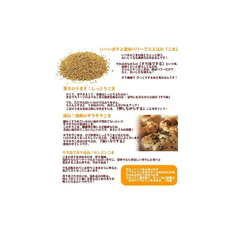White sesame made in Kagawa Prefecture and does not use pesticides during the cultivation period. No pesticides, herbicides, chemical fertilizers, or organic fertilizers are used throughout the growth period.