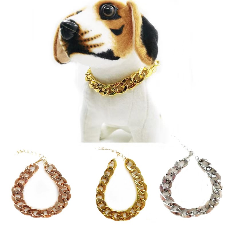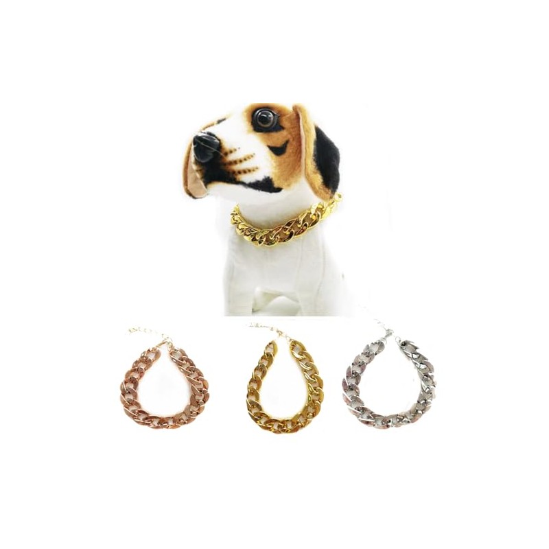 Domineering pet dog chain collar with adjustable buckle, pet Cuban collar, cat and dog cool accessory large necklace--golden
