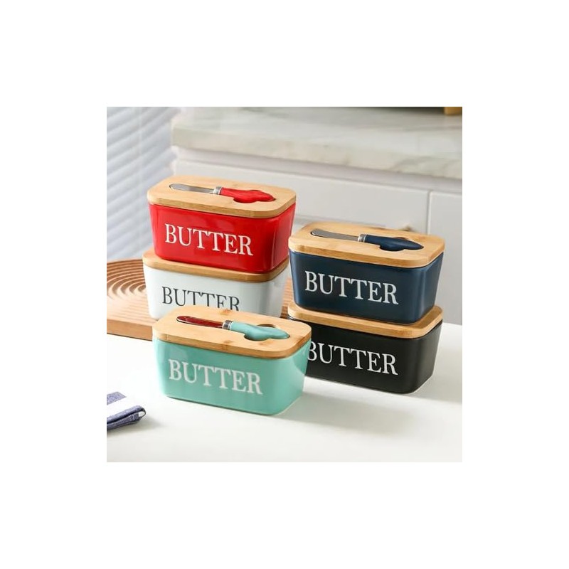 - 【Multi-function】This is a multifunctional butter container, you can also use it to store other ingredients such as biscuits, nuts, seasonings, etc. At the same time, it is also a great kitchen decoration. We have multiple colors for you to choose to match your tableware style, add a sense of fashion to your kitchen.