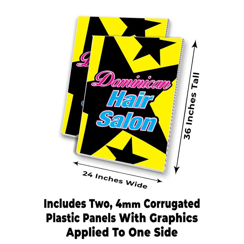 Dominican Hair Salon (24" X 36") 4mm Corrugated Plastic Panel, Graphics Applied to 1 Side (Pk of 2)