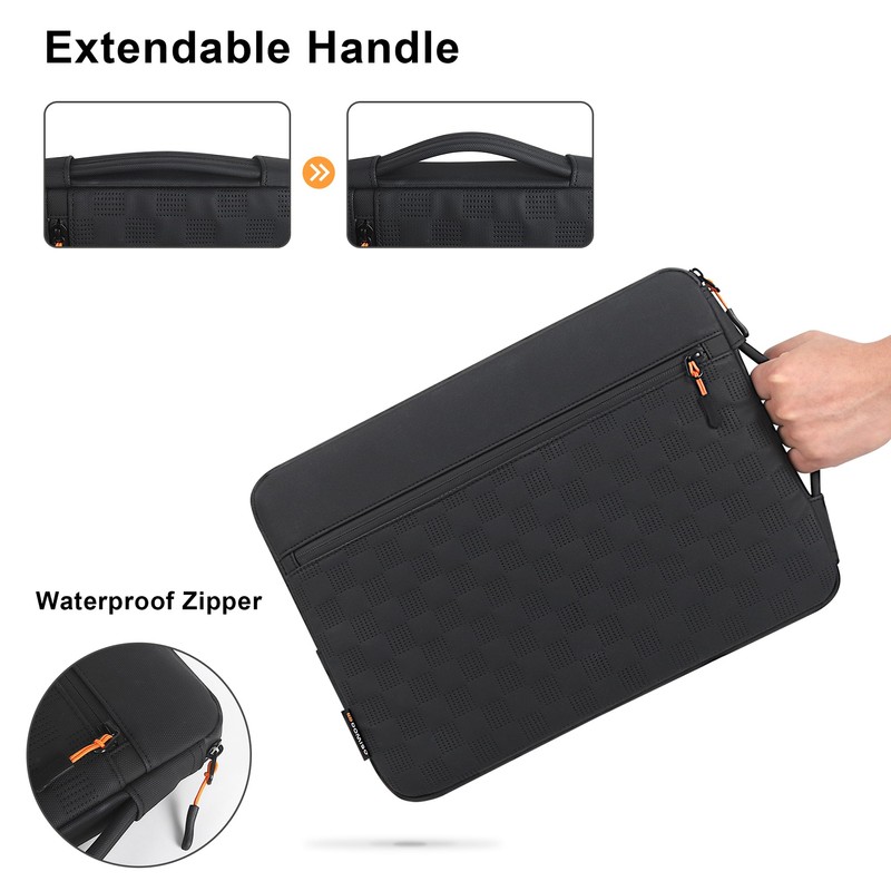 - Enough storage space: with the main compartment for your laptop, this laptop sleeve case also has an additional front zip pocket to store small iPad, mouse, chargers, cables, headphones, pens, hard drives, power bank etc. The zip can slide very smoothly.