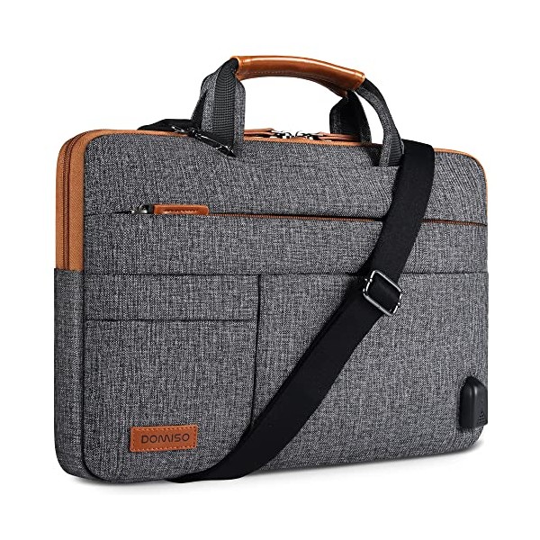 DOMISO 15.6 Inch Multi-Functional Laptop Sleeve Business Briefcase Messenger Bag with USB Charging Port Compatible for 15.6" Laptop/Apple/IdeaPad/Acer Aspire/HP ENVY 15 / Dell XPS 15,Dark Grey