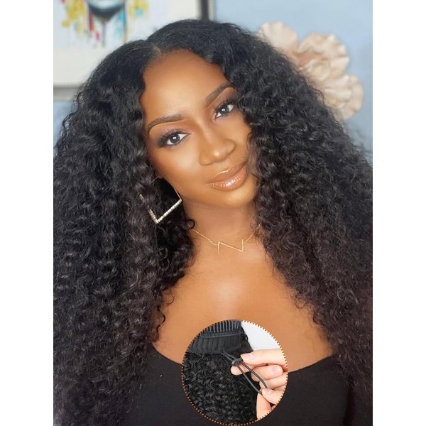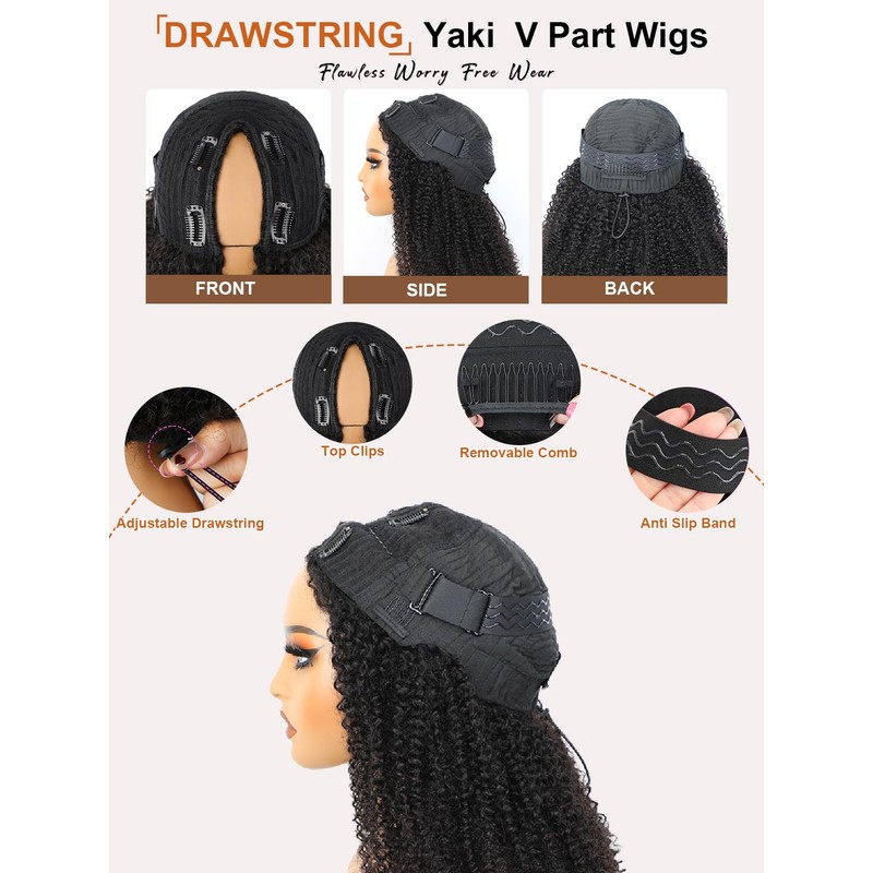 Domiso Kinky Curly V Part Wig With Invisi Drawstring Human Hair All Size Fit No Leave Out V Part Wig Human Hair Glueless Beginner Friendly 20 Inch