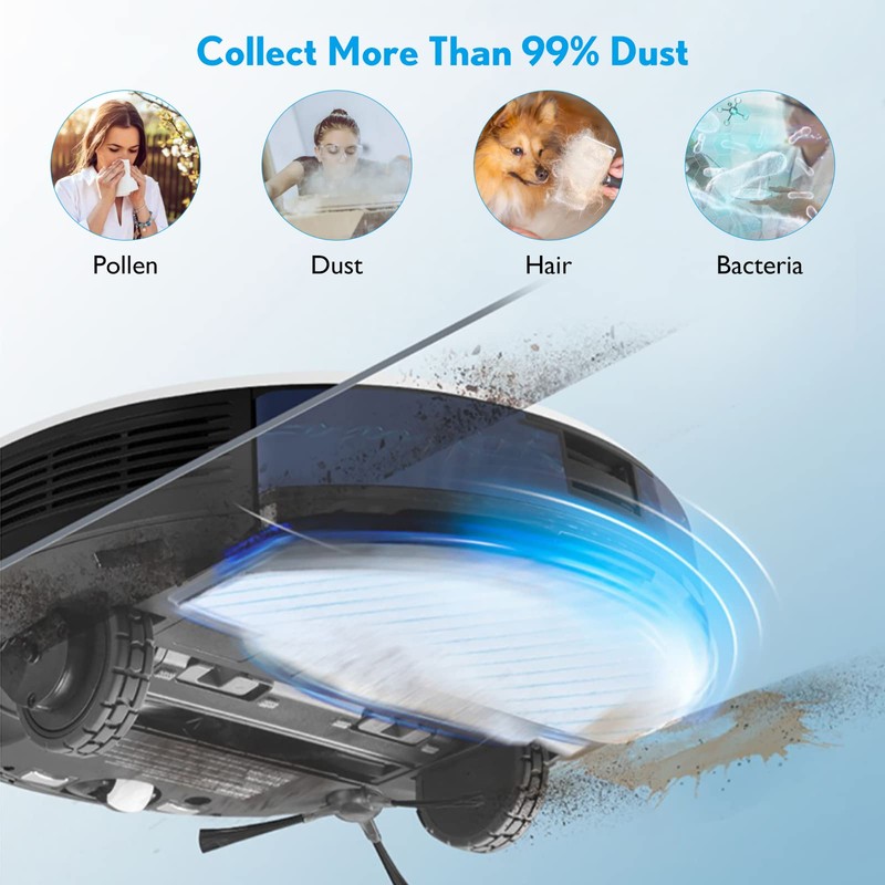 - ????Hocheffizienter T8-Staubbeutel?? Ecovacs deebot ozmo t8 kompatible Staubsaugerbeutel besteht aus einem hochwertigen 3-Lagen-Filter, der 1ber 99% der Feinstaubpartikel filtert. Verriegelungsmechanismus sorgt daf1r, dass der Staub im Beutel bleibt, wenn er gehandhabt wird.