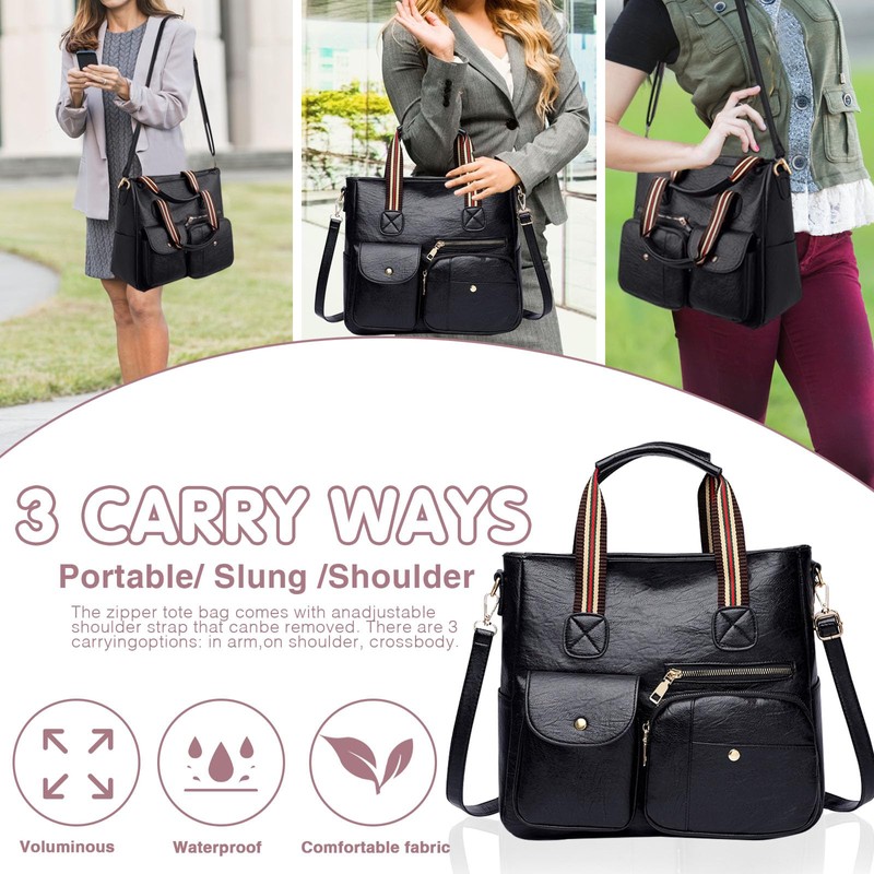- 【Three Carry Ways】The zipper tote bag comes with a removable and adjustable single shoulder strap, it can work as crossbody bag or one shoulder bag. There are 3 carrying options: in arm, on shoulder, cross body. These carry ways can meet your daily needs, just choose your favorite way.