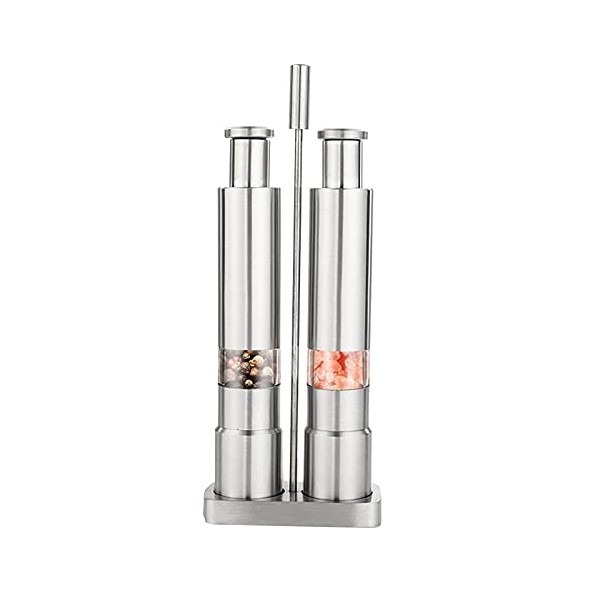 domoi Manual Salt and Pepper Grinder Set Thumb Push Pepper Mill Stainless Steel Spice Sauce Grinders with Metal Holder