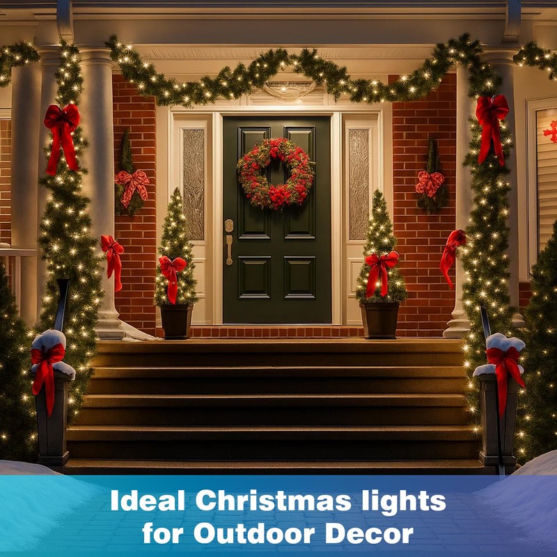 - Super Long Outdoor Christmas Lights: comes with 394ft 1200 LEDs & included 9.8FT extension cord, Our LED Christmas lights are easy to cover a lager area. Upgraded LEDs emit a bright, romantic and warm illumination, perfect for Chrsitmas season