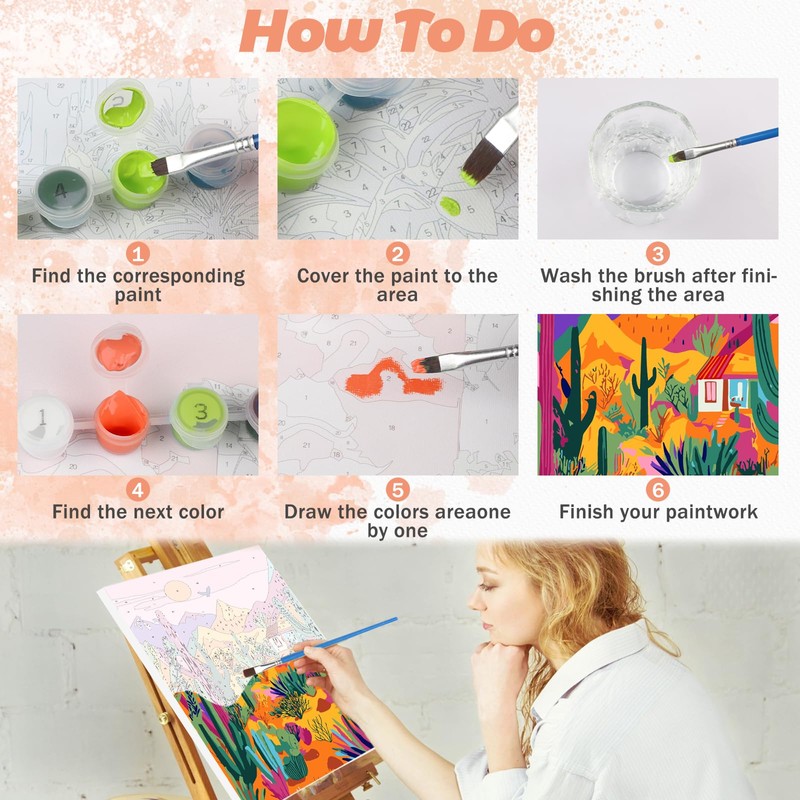 - PAINT BY NUMBERS: Suitable for any group, just follow the markings on the canvas to fill in the picture with the corresponding color paint to complete, even beginners can be simple to start. You can exercise your hands-on skills, kill your boredom and fulfill your artistic dreams.