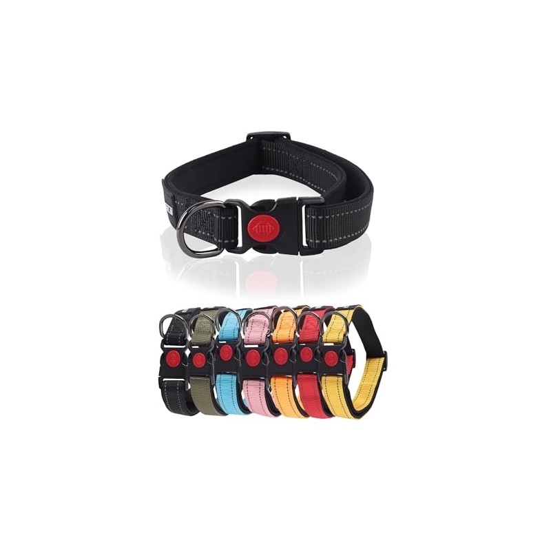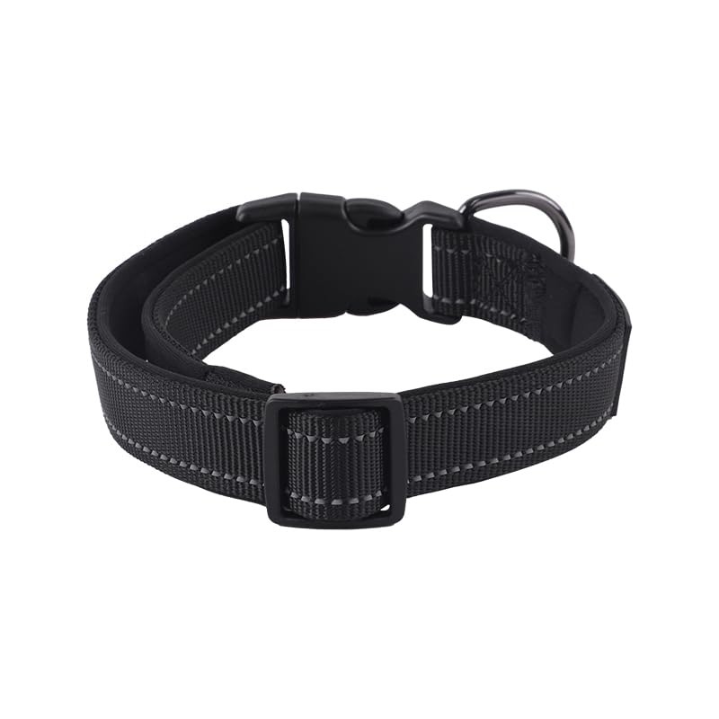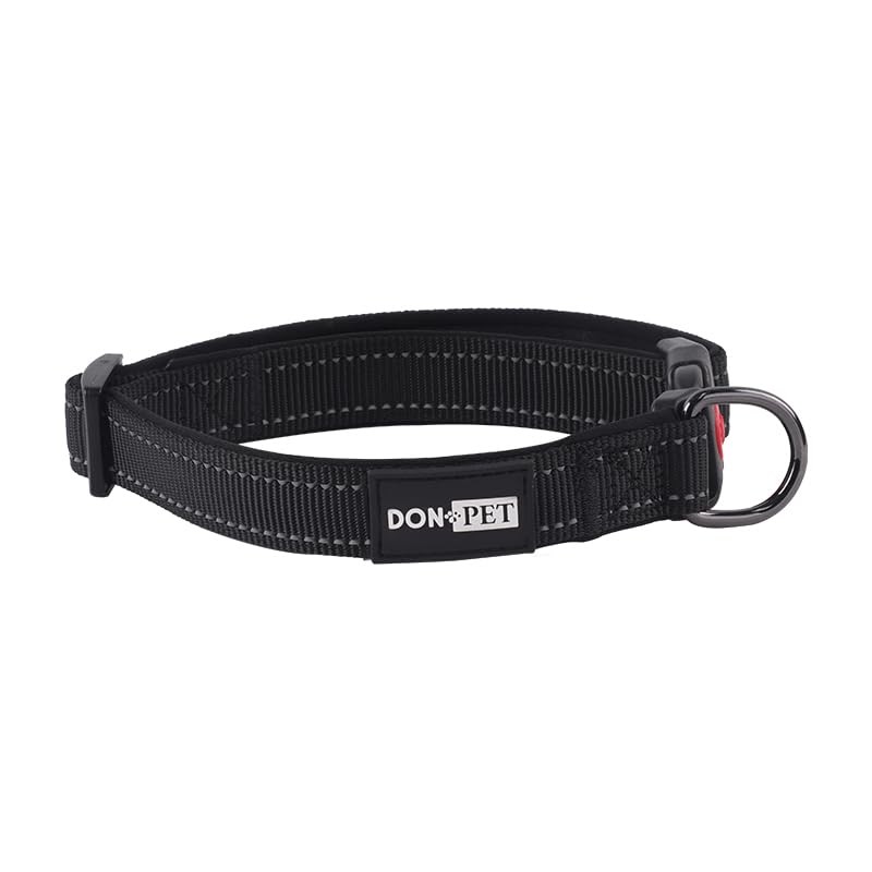 Don Pet Dog Collar, Reflective Adjustable Basic Dog Collar with Soft Neoprene Padding, Durable Nylon Pet Collars for Puppy, Small, Medium & Large Dogs - Large Black: (40cm - 60cm).