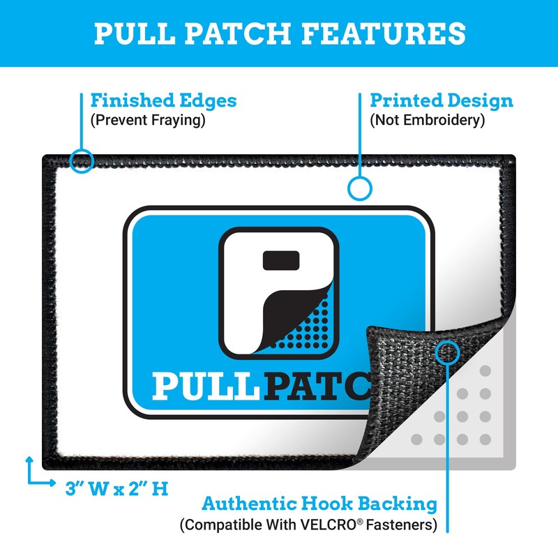 - THE PULL PATCH ‘CATCH’ -- Compare our hand printed patches to embroidered, woven, and PVC patches – and you’ll see that Pull Patch products are far superior in quality. Our patches have a low profile that won’t stick out like other morale patches, which allow those patches to be sewn onto garments. All of our patches have a merrow edge (enclosed border) which offers extra durability. Patches are sized 3”W x 2”L and Made in the USA.