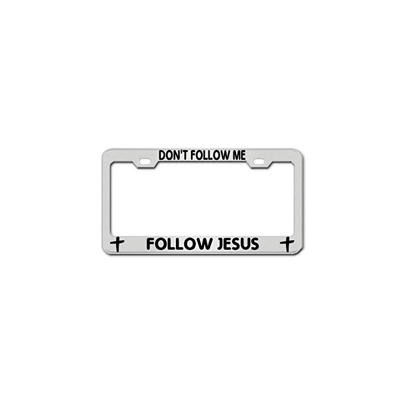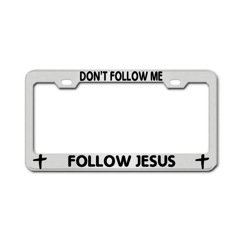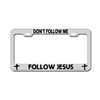 Don't Follow ME Follow Jesus Chrome Aluminum License Plate Frame Metal Covers