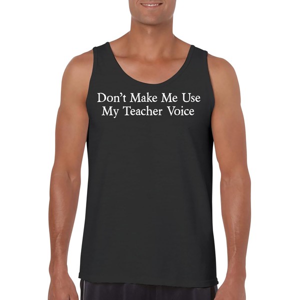 Don’t Make Me Use My Teacher Voice - Funny Men's Sleeveless Tank Top – Comfortable Graphic Tee for Adults CP05 Black