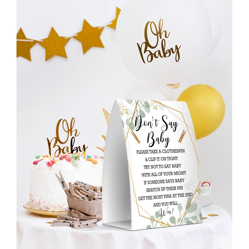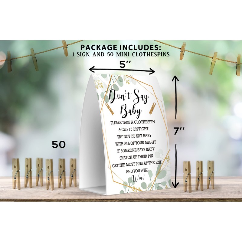- Use this 5x7" Don't Say Baby Play Sign to instruct your guests to bring their clothespins the moment they walk through the door. And tell them that the word "baby" is not allowed.